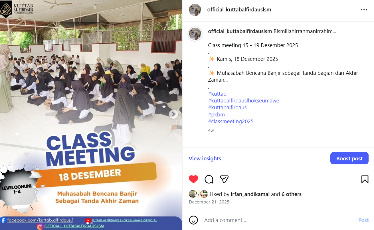 PKBM KUTTAB AL FIRDAUS LHOKSEUMAWE - ADAB SEBELUM ILMU, IMAN SEBELUM AMAL